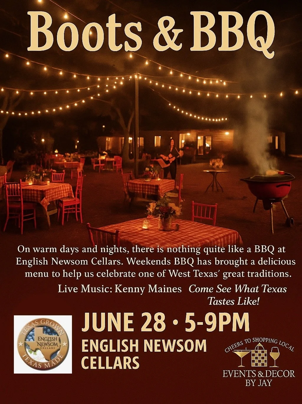 We’re popping up at one of the hottest summer events in West Texas! Boots & BBQ at English Newsom Cellars! Join us on Friday, June 28 from 5–9PM for a night of live music, incredible BBQ, and good ol’ Texas charm. Come shop the full Waltseys collection! Brand new arrivals, your favorite staples, and all the style you need for the season. Grab a glass of wine, enjoy the sounds of Kenny Maines, and snag your next outfit or outfits!